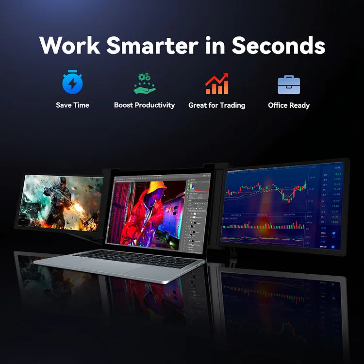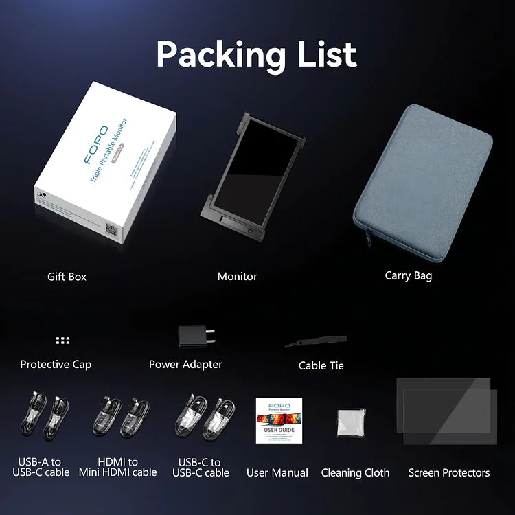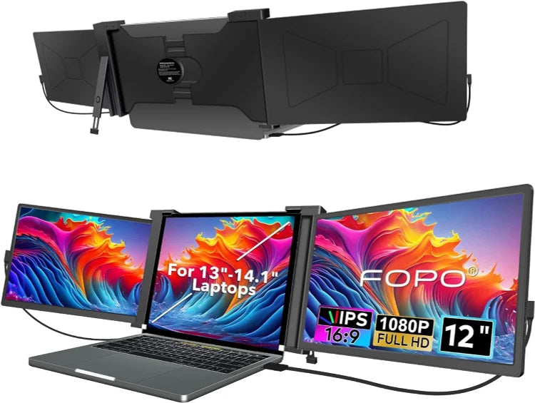 The FOPO S12 is a compact and lightweight triple-screen extender that adds two extra 12-inch Full HD displays to your laptop. Designed for professionals, students, and travelers, it delivers a portable, all-in-one solution for multitasking and boosting productivity on the go.