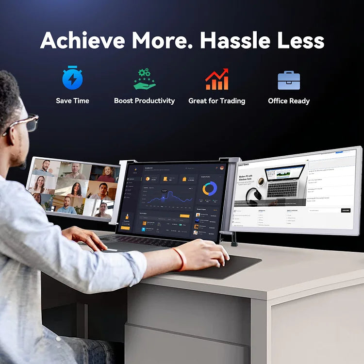 The FOPO S16 is a versatile triple-screen laptop extender featuring dual 13.3″ Full HD displays. Designed with a balance between portability and screen space, it’s the ideal solution for students, professionals, and travelers who need more workspace without carrying bulky monitors.